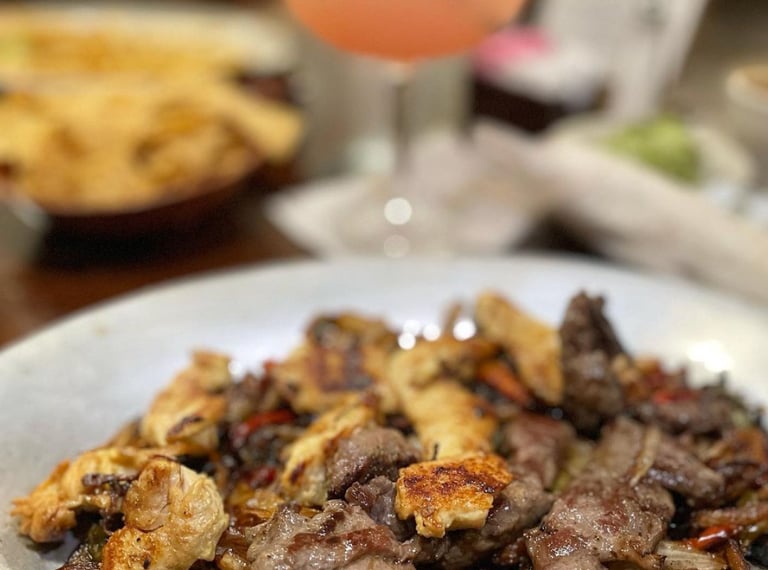 Spicy, Savory, and Sizzling Fajitas! One of many favorites by our guests. Can't decide between beef, chicken, or shrimp? Porqué no los tres?